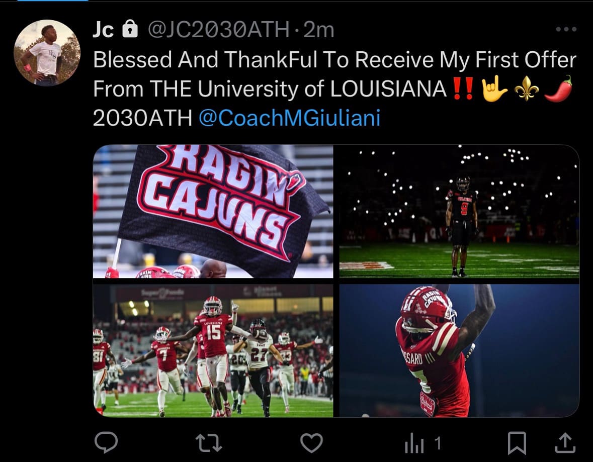 To receive an offer from a school like that at an early age is rare. For the Ragin’ Cajuns, they saw a lot of special qualities already in him to pull the trigger and offer him at a young age.