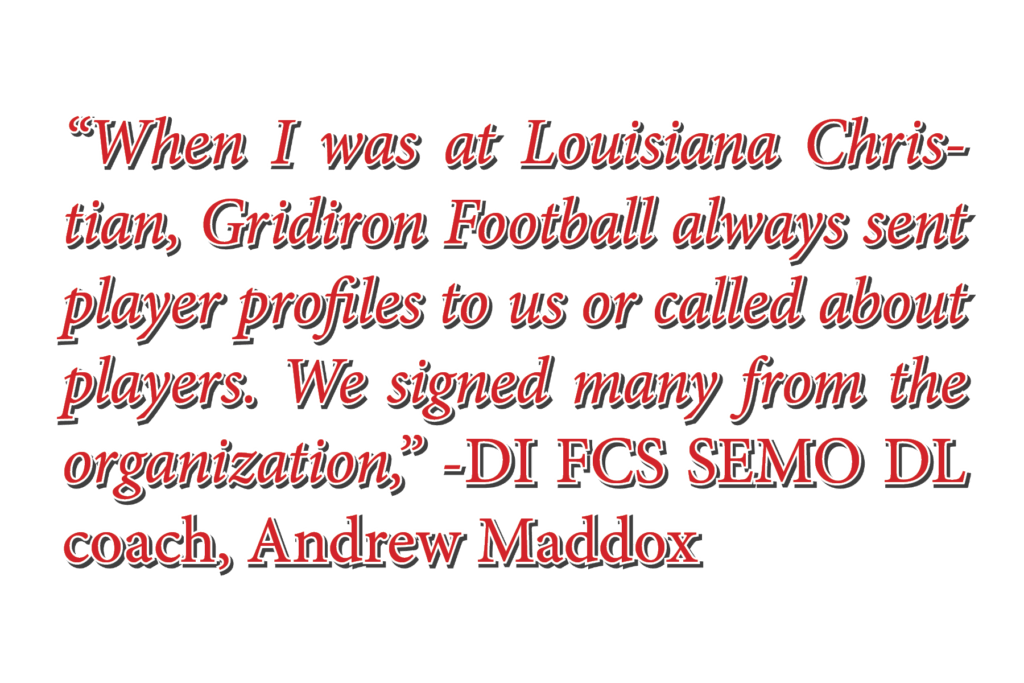Gridiron Football USA was created to showcase all of the high school, college and professional football teams across the nation. Gridiron Football is a media company first, promoting the positive aspects of football from players, coaches and teams. Secondly, Gridiron Football hosts camps, 7v7 Tournaments, the Gridiron Football All-American Bowl Game, and so much more. Since our beginning in 2014, we have helped more than 3,500 young men get the attention of college coaches and earn college football offers.