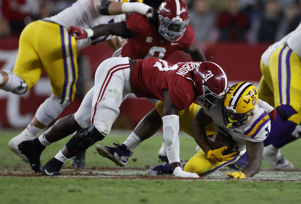 After the kick-off to the Tide, the Tigers defense forced a three and out. However, the Tide would force back-to-back three and outs against the Tigers. Both teams would battle for field position. LSU would hold Bama scoreless through nearly the entire first half. A big hit on Ty Davis-Price, for a loss of four, by Will Anderson seemed to ignite the Bama defense. Bama would receive the ball with just under nine minutes left and go on a 12 play 77 yard scoring drive that ate up over six minutes on the clock. The touchdown was scored by a Brian Robinson rush from two yards out.