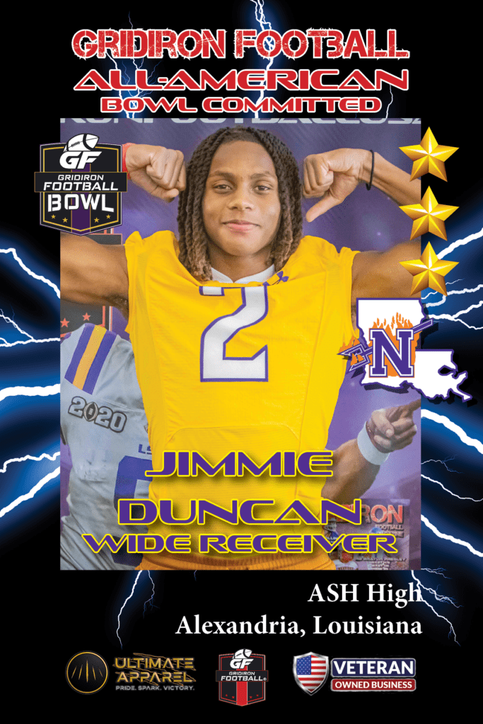 Fresh off leading the Trojans to the Division I (Select) State Championship Game, Alexandria Senior High School (Alexandria, LA) WR Jimmie Duncan has committed to play in the 2024 Gridiron Football All-American Bowl Game.