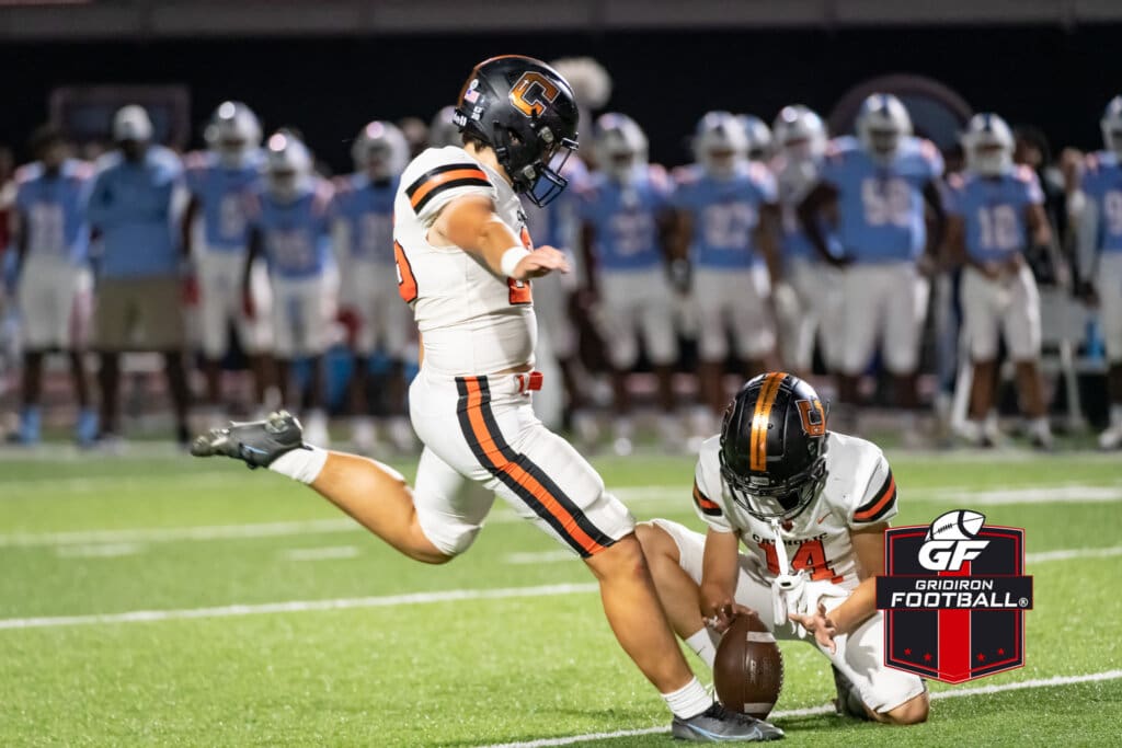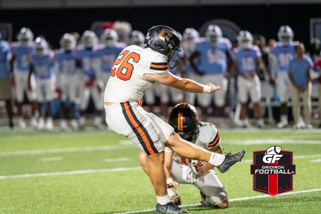Catholic proceeds to run three plays and sets up their field goal kicker Landon Carter, who missed a kick earlier to give the Bears their first lead of the game with 15 seconds left to play. Carter bounced back and drilled a 40 yard field goal to give the Bears their first lead at 24-21. After being down 21-7, the Bears have clawed all the way back and scored 17 unanswered points to grab the late lead.