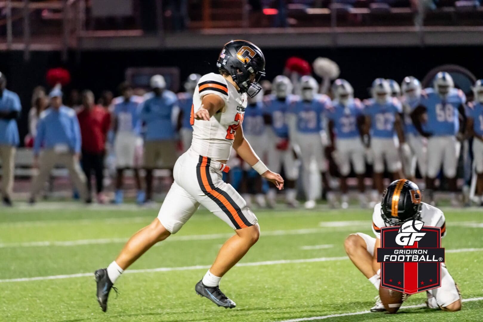 Catholic proceeds to run three plays and sets up their field goal kicker Landon Carter, who missed a kick earlier to give the Bears their first lead of the game with 15 seconds left to play. Carter bounced back and drilled a 40 yard field goal to give the Bears their first lead at 24-21. After being down 21-7, the Bears have clawed all the way back and scored 17 unanswered points to grab the late lead.