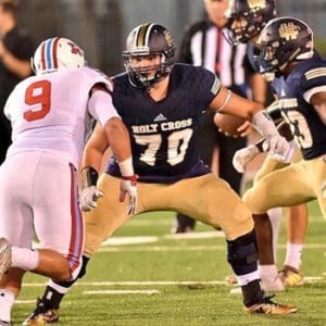 Austin Wehrlin is an offensive lineman from Holy Cross High School in New Orleans, LA. Austin has good strength and speed. Off the ball he has a good first step on defensive lineman and uses his hands well to keep blocks in front of him. He pinches the end and can get to the linebacker at the next level of the defense on run plays. Austin is a smart offensive lineman and very experienced having played at both tackle and guard. Going into his senior year, the offensive line at Holy Cross is expected to be a huge strength for the team and Austin is looking forward to a successful season.