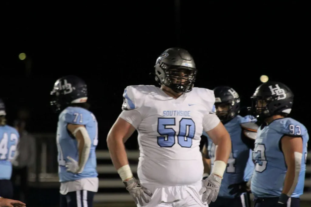 Kobe Branham is a 3-star offensive lineman from Southside High School Mavericks, located in Fort Smith, Arkansas. He is a player who can play and has experience in any position on that offensive line, but he plays most of his snaps at right guard. The senior lineman is 6’7” and 335 pounds. He uses his massive build to triumph over his opponents on the other side of the line. A talented run blocker, Kobe will move defenders with ease to open up holes for his running backs to explode through. Kobe is committed to playing for the Arkansas Razorbacks next year.