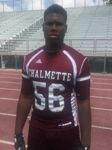 Nathan Thomas is an offensive tackle at Chalmette High School in Chalmette, Louisiana. He is a rising senior in the class of 2019. Nathan has really good mobility for his size. He does a great job of firing off the ball low and getting hands on. After initial contact he does a decent job of getting extension. On combo blocks he comes off well and attacks second level defenders.