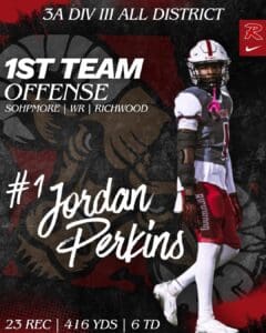 We would like to welcome our next Diamond In The Rough to Gridiron, Jordan Perkins, a 2028 WR out of Richwood High School in Monroe, LA. At 5’10 160, and with a GPA of 3.5, Perkins attended the Gridiron Elite Camp in Monroe, where he posted a 4.97 40, a 4.47 shuttle, and an 8’10 broad jump. Those stats do not tell the whole story of how fast he is, as he can break off long touchdown catch-and-runs and gain separation from defenders in an instant. This is a kid who didn’t start playing football until he was around 12 and has been raised by his sister for most of his life. He has played multiple positions, including receiver, quarterback, tailback, and defensive end.