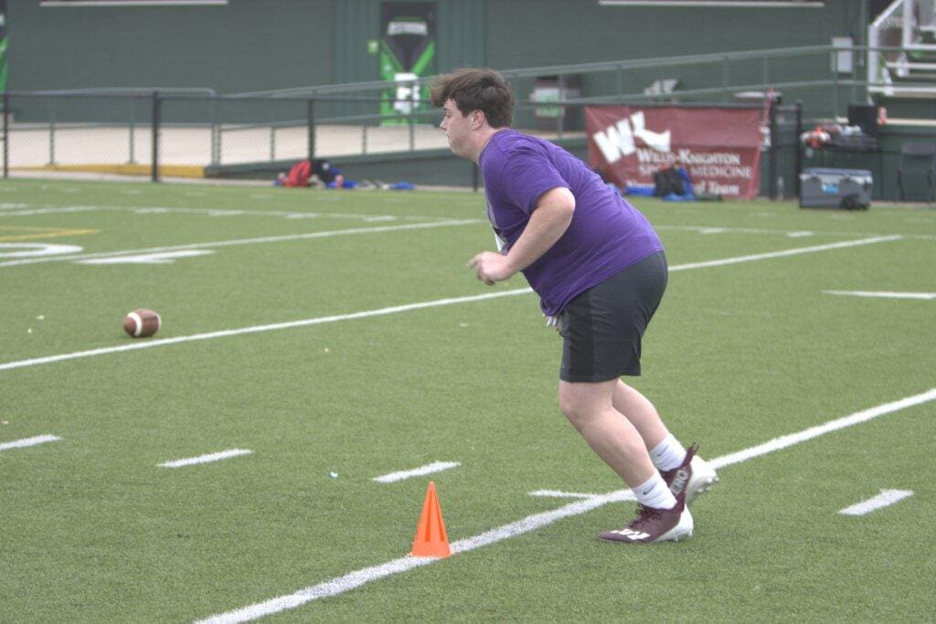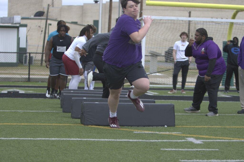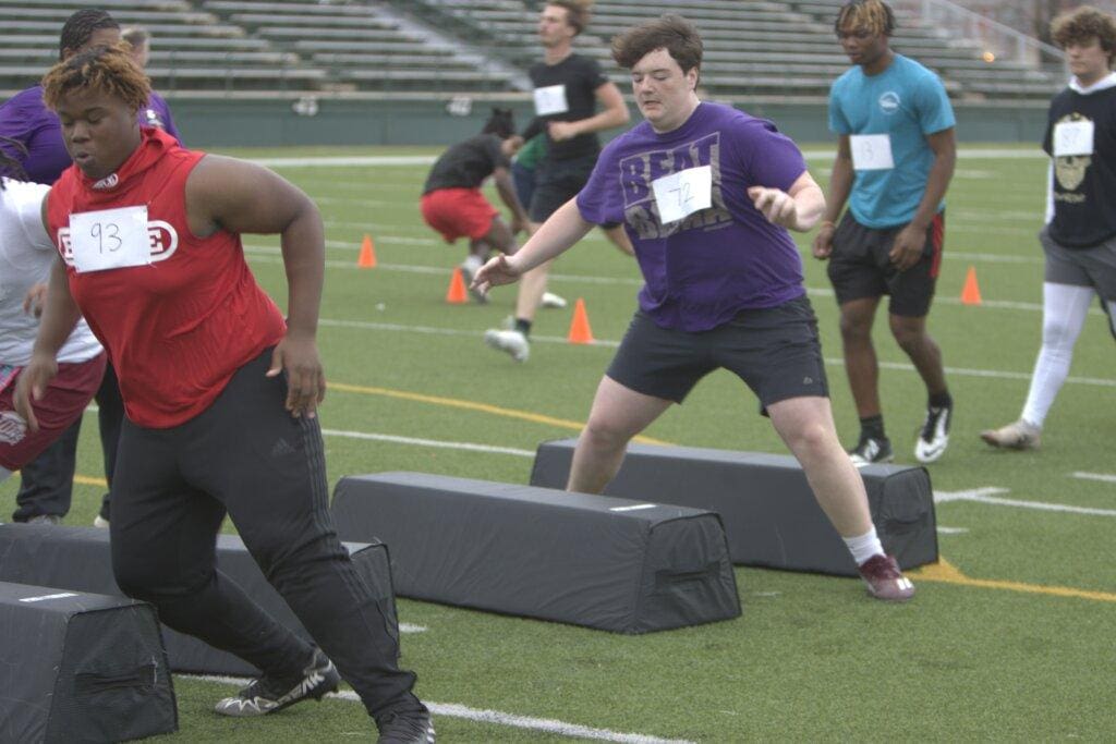 Grayson Gorum is a 6’1, 285 lb offensive lineman from the class of 2026. Grayson has exceptional strength for his age, squatting 520 lbs and bench pressing 265 lbs. He became a member of the 1000 pound club as a 10th grader, a feat of its own. He recently attended Gridiron’s first Elite camp of the year, and he made a name for himself. Grayson had lots of noticeable qualities that you want in a lineman. His footwork, and ability to keep his man on the block, shined through during trench work drills. Grayson was able to showcase his brute strength during tire tug of war drills, dragging his opponent into the endzone swiftly. Grayson was dominant on the line this season, recording 12 pancake blocks as a right tackle. A young man who has been playing football since he was in 5th grade, Grayson will no doubt be playing college ball in a few years.