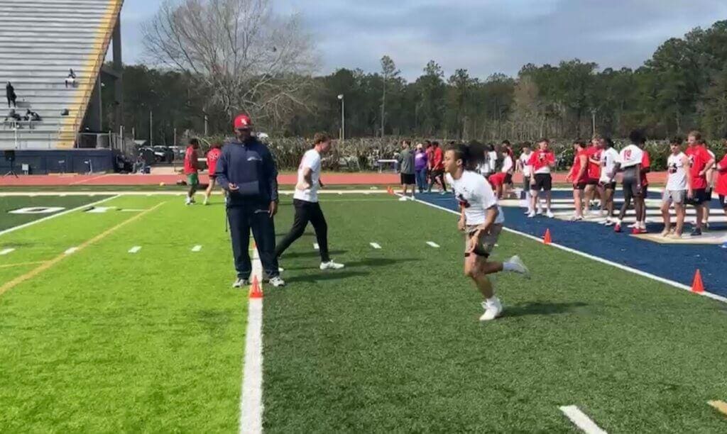 Ronald Robinson is a 5’8, 140 lb running back out of Covington High School in Covington, Louisiana. The class of 2025 running back is very shifty, able to create space with just a quick cut. He is a very agile back, and he proved this at Gridiron Football’s Elite Camp last Saturday. Ronald ran a speedy 4.54 second forty yard dash, adding onto an impressive 8 foot and 3 inch broad jump. He showed his full effort on every rep during receiver and running back drills, and went up for every jump ball during 1 on 1’s and 7 on 7. It is very apparent that Ronald has a high football IQ. He finds the right hole to burst through every time, and understands the angle he needs to take to make a play. Ronald is also a very tough runner. He does not let his size affect a play, and regularly needs multiple defenders to bring him down. He has been playing football since he was 5, and still has room to grow. I think Ronald’s future in this game has some real potential.