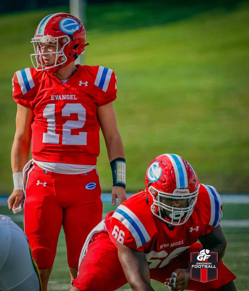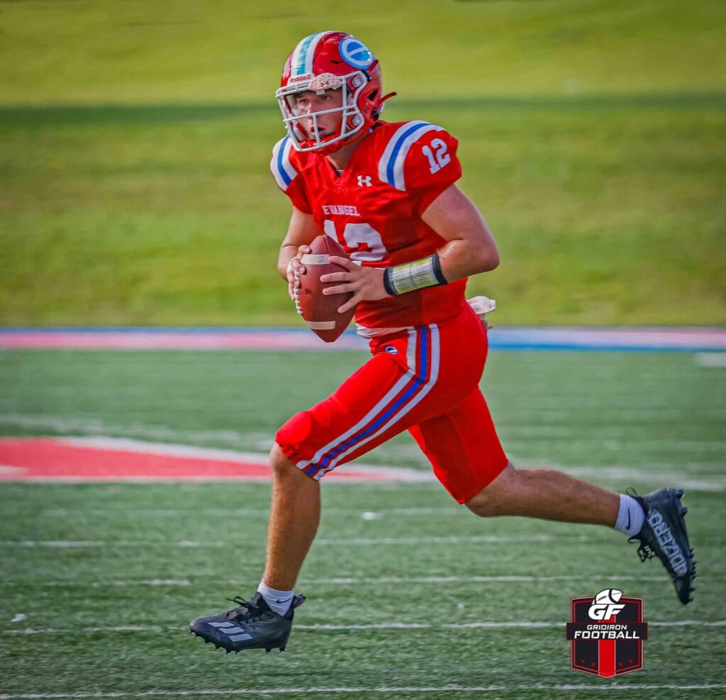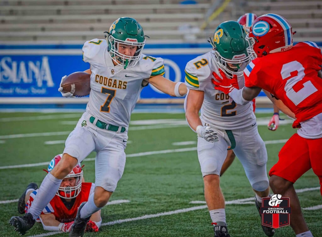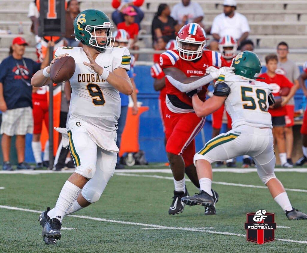 The Eagles started off the jamboree strong completing a 55 yard pass on the first play. However, penalties stalled their first two drives. After both teams were feeling each other out through the first two drives, it was Evangel Christian’s defense that stepped up and made the first big momentum play of the game as Zachary Partman intercepted a screen pass all the way to the Cougars’ 12 yard line. The Eagles capitalized off the turnover when quarterback Peyton Fulgham connected with Brayden Curry for the touchdown to put them up top 7-0.