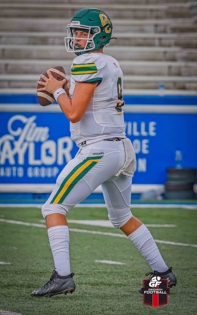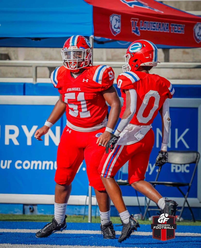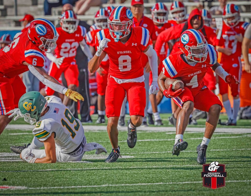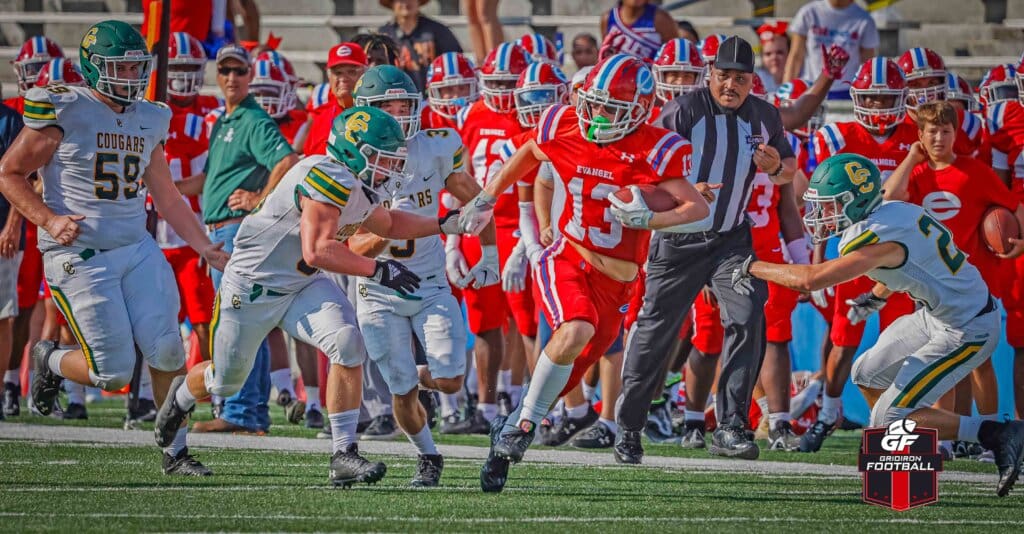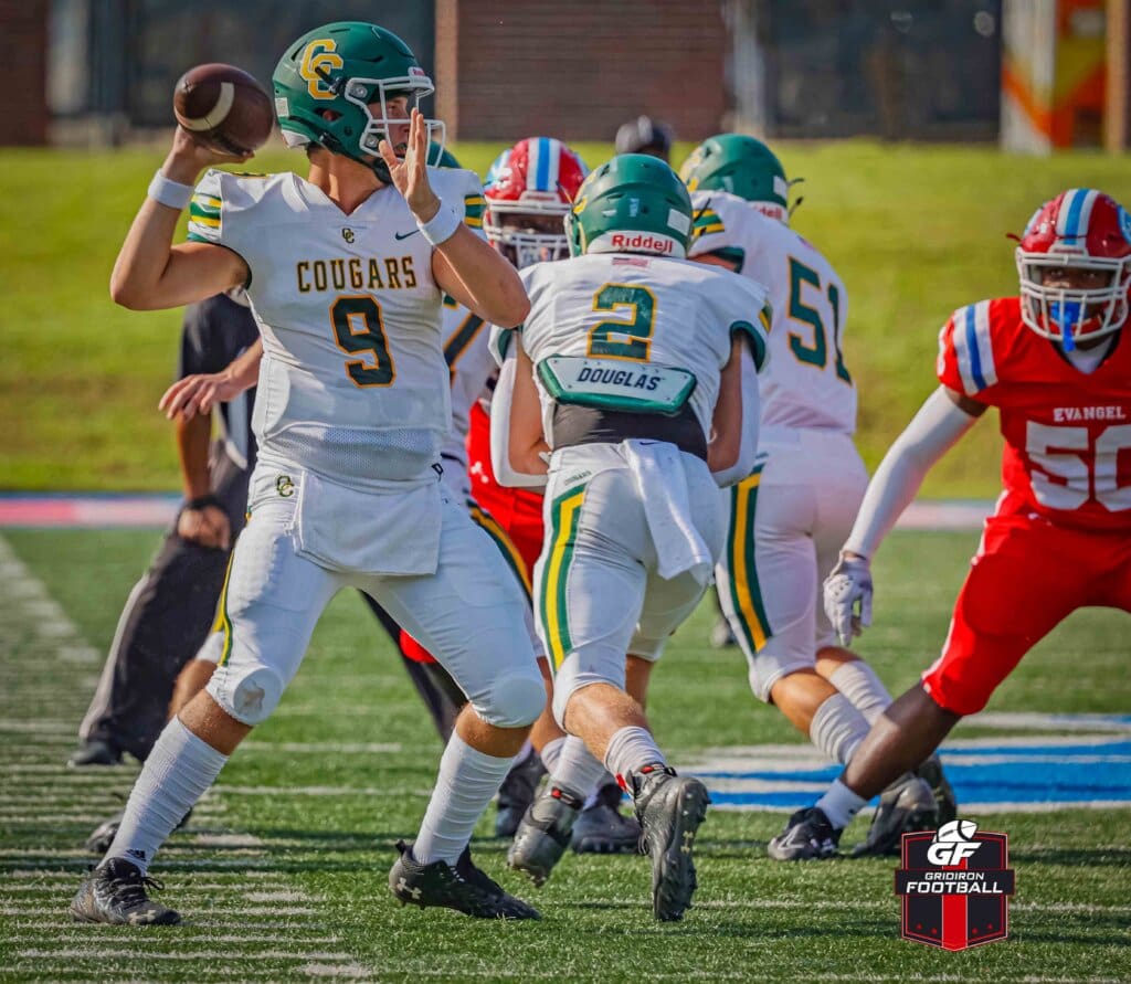 The Eagles started off the jamboree strong completing a 55 yard pass on the first play. However, penalties stalled their first two drives. After both teams were feeling each other out through the first two drives, it was Evangel Christian’s defense that stepped up and made the first big momentum play of the game as Zachary Partman intercepted a screen pass all the way to the Cougars’ 12 yard line. The Eagles capitalized off the turnover when quarterback Peyton Fulgham connected with Brayden Curry for the touchdown to put them up top 7-0.