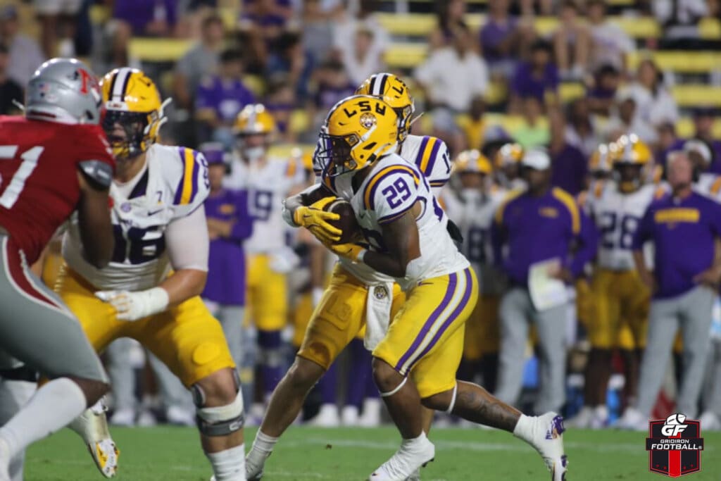 Kyren Lacy also had a monster game as the Tigers’ number one receiver. He and Nussmeier showed why this QB1/WR1 connection is going to be lethal throughout the course of the season. The Thibodaux product finished the game with five grabs for 65 yards and three touchdowns. Zavion Thomas was the third receiver to score his first receiving touchdown as a Tiger to complete the scoring.