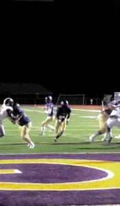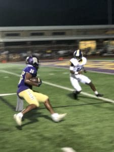 Adonis Friloux came out hungry on the following Higgins offensive possession, recording a tackle and then an 8 yard sack on the Higgins QB. Friloux’s excellent defensive stance pushed Higgins into another 3-and-out and Hurricane punting situation. For the second consecutive Higgins punt, Hahnville’s Robert Jackson came up with yet another block, this time with the ball being launched into the air off the hands of Jackson, and caught mid-air by fellow senior safety Lentrell Petetant in the redzone. Drew Naquin then picked up a rushing touchdown of his own following Jackson’s second punt block, giving Hahnville a 35-0 lead as the first half began to wind down.