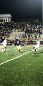 L.W. Higgins received the ball first on offense to start the game, where a short kickoff gave the Hurricanes a short field to begin play. Marquell Addison of Higgins recorded the first reception of the game, hauling in a medium gain of 9 yards as the Hurricanes crossed into Tiger territory. Following the reception, the Hahnville defense came up big with tackles for loss by DE Adonis Friloux and MLB John Pearsall, two players who swallowed up tackles all night for Hahnville. On 3rd and 8, the Hurricanes looked to the air but failed to complete their pass due to tight coverage from Hahnville’s senior CB Syre Lewis, forcing a punt. A high snap launched the ball over the head of the Higgin’s punter, causing a scramble for the football which would be recovered by John Pearsall at the Higgin’s 26 yard line.