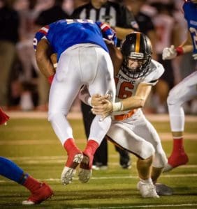Elijah is a very strong defender with a fast initial get off. He can use his speed to split defenders or his strength to shed would-be one-on-one blockers. He should spend some time during the off-season to work on his pass coverage. Could be a DI or DII prospect. Here is a link. https://www.hudl.com/video/3/7035115/5a3be9c8f55fd80d60777932