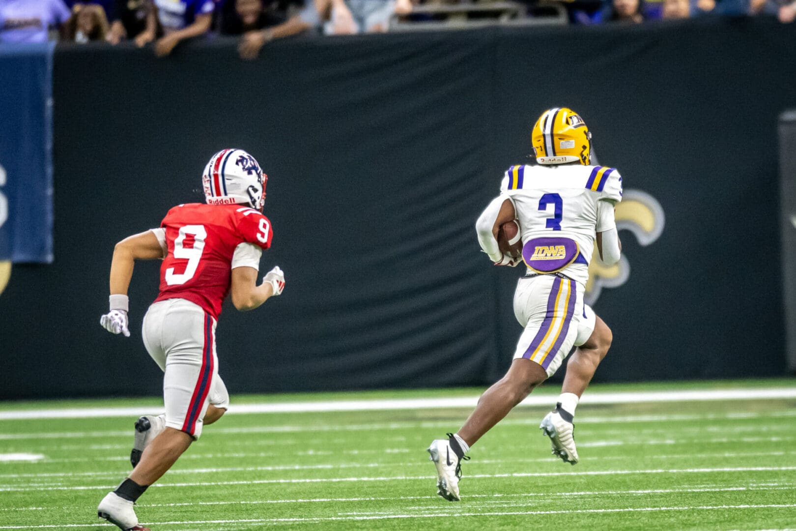 On the other side, North DeSoto QB Luke Delafield, who ends his prolific high school career as the program’s all-time leading passer, had a great game statistically completing 17/24 passes for 233 yards and two touchdowns while rushing for another 79 yards and one touchdown on the ground. His main target was Colton Lacour, who finished with six grabs for 113 yards and two touchdowns.