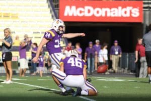Culp, a redshirt freshman from Phoenix, Arizona, was a perfect 4-for-4 on field goals. The four field goal ties for the second-most in a game in LSU history and is the most by a LSU kicker since the 2011 season.