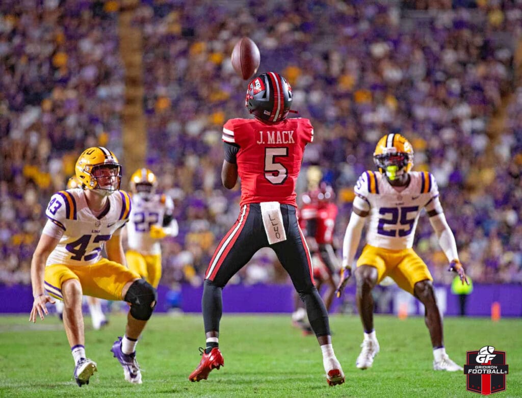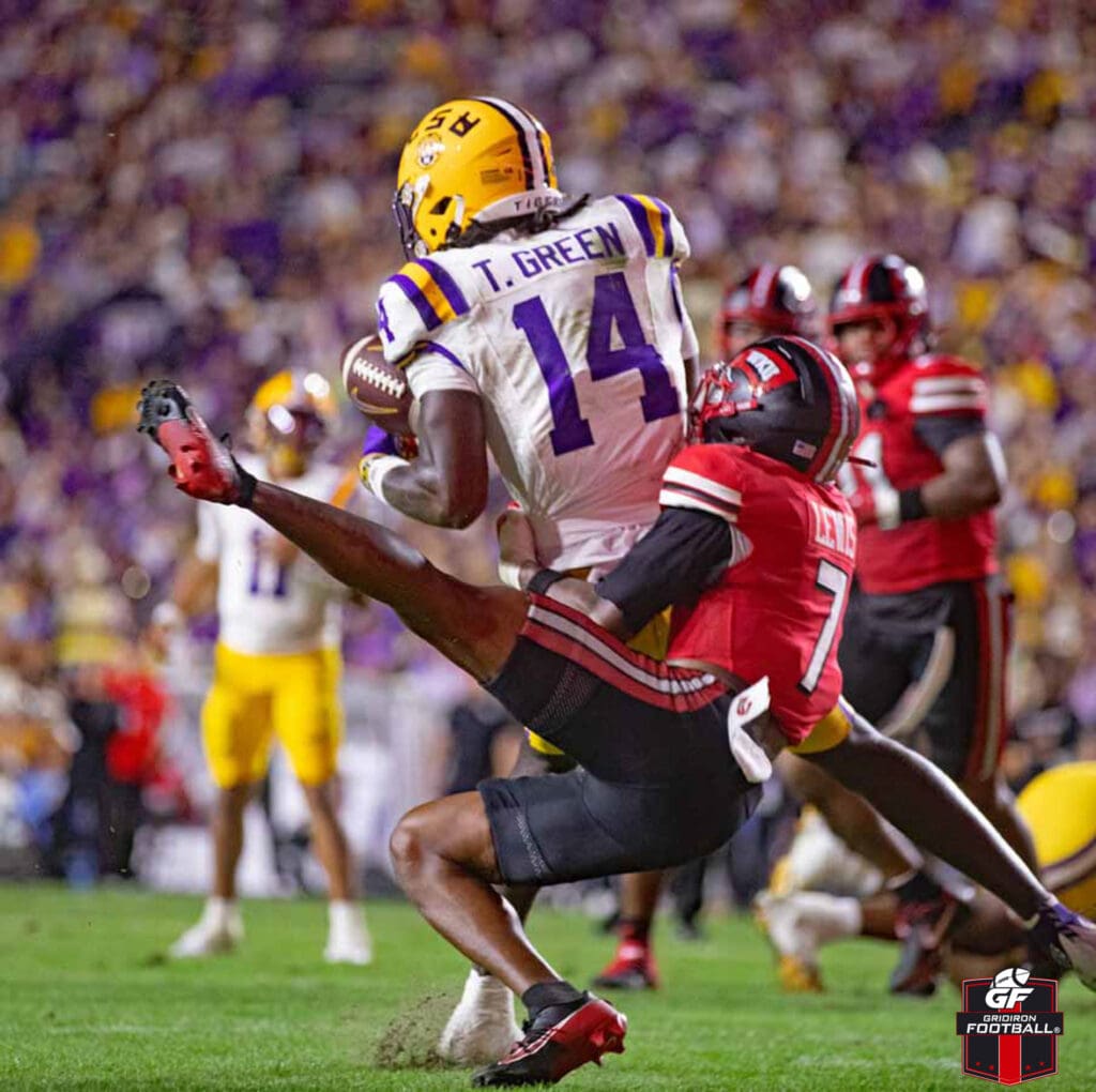 Trailing 3-0 for majority of the first half, the Tigers only had 111 total yards of offense before finally finding the end zone when Michael Van Buren Jr. connected with Trey’Dez Green for a 11 yard touchdown to give the Tigers a 7-3 lead at halftime. Damian Ramos added two field goals to extend the LSU lead at 13-3.