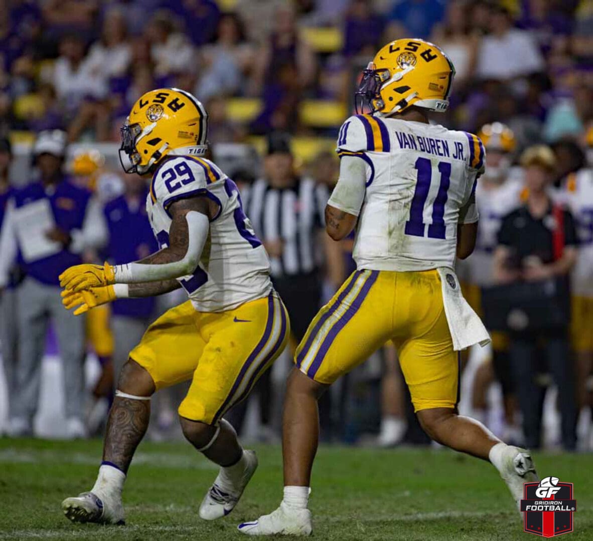 Trailing 3-0 for majority of the first half, the Tigers only had 111 total yards of offense before finally finding the end zone when Michael Van Buren Jr. connected with Trey’Dez Green for a 11 yard touchdown to give the Tigers a 7-3 lead at halftime. Damian Ramos added two field goals to extend the LSU lead at 13-3.