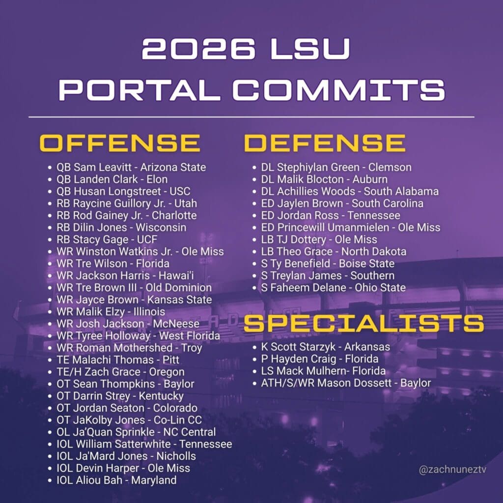 Finally, on special teams, the Tigers have their placekicker in Scott Starzyk from Arkansas while adding punter Hayden Craig and long snapper Mack Mulhern both from Florida. With a roster that was thinning out because of the transfer portal, a lot of credit has to go to Kiffin and his new coaching staff to not only turn this into a competitive roster, but a roster on paper that is capable of making a College Football Playoff run. The biggest question will be how much this new look roster can gel and if they can do that, the Tigers could make a lot of noise quickly in the Lane Kiffin era.