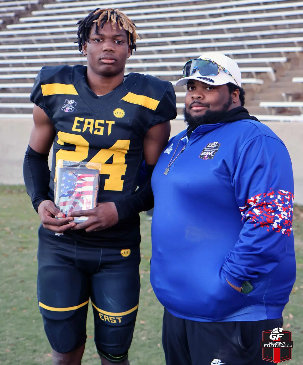 Arayvis Davenport is a bruising running back out of T.O. Rusheon in Bossier, Louisiana. The 6’1, 181 lb athletic specimen is a mix of Derek Henry and Alvin Kamara. He can run you over while also having amazing ability to go up and get the ball. This was evident as Arayvis scored 2 touchdowns through the air on only 2 catches for 156 yards during the 2023 Junior High Gridiron Bowl. His breakaway speed was also on display as Arayvis broke off a 43 yard touchdown run on the second play of the game. He finished the game with 3 all purpose touchdowns and 201 all purpose yards, along with 4.5 tackles and a forced fumble on the defensive side of the ball. These amazing stats earned him Offensive MVP for the 2023 Junior High Gridiron Bowl. The class of 2028 athlete is more than his stats show. He has an astounding 3.5 GPA, and an attitude that nothing in life can bring him down. This season he put up impressive stats of 20 total touchdowns and over 1,000 all purpose yards. I recently interviewed Arayvis which you can find below.