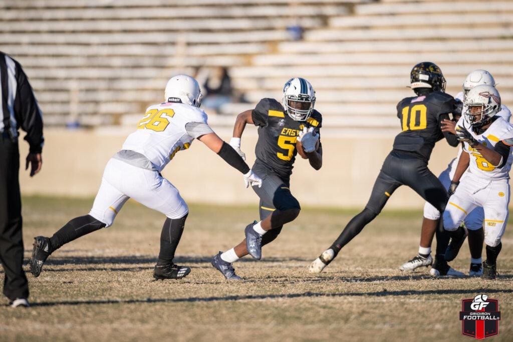 Talamesi Albert is a 5’10, 210lbs. RB/LB from Baton Rouge, Louisiana who attends Woodlawn Middle School and recently participated in the 2023 Gridiron Football All-American Bowl Game for Junior High. Talamesi is a very prodigious student athlete at his school in both the classroom and on the field. He has a GPA of a 3.8, a speed of 5.08/40, and has played 8 seasons of football on both offense and defense. In his previous season, Talamesi had averaged 2 sacks, 7 tackles, 30 rushing yards, and 70 receiving yards in each game.