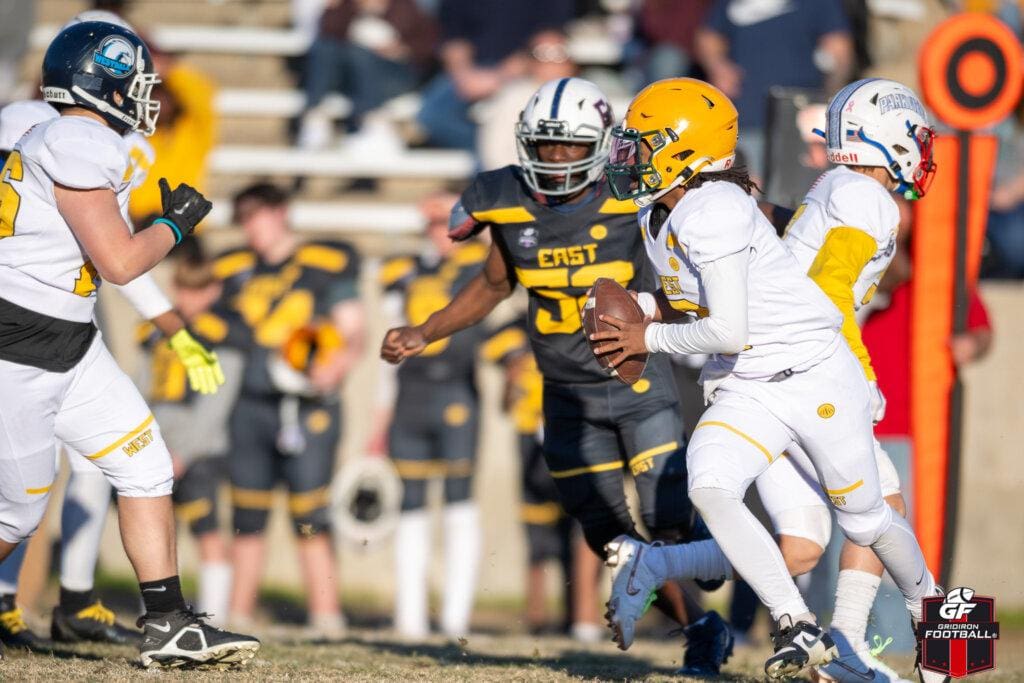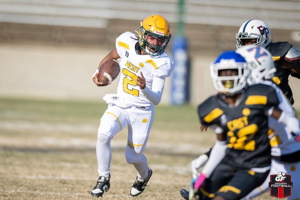Dexter Ricard is a young and upcoming prospect, who currently plays for Southern lab in Baton Rouge, Louisiana. He is 14 years old and in the 8th grade with a 3.6 gpa listed at 5’6 weighting 140lbs. He’s a Dual threat Quarterback in the class of 2028 that can make plays throwing or his legs if needed. At the Bowl game he had 7 rushing attempts for 44 rushing yards averaging 6.3 yards an attempt. When the pocket breaks down he has the speed and awareness to avoid sacks and extend the play to make the throw. If he can’t find anyone open to throw to he has that ability to take off and get the first down or more. Here’s a quick interview we had with him.
