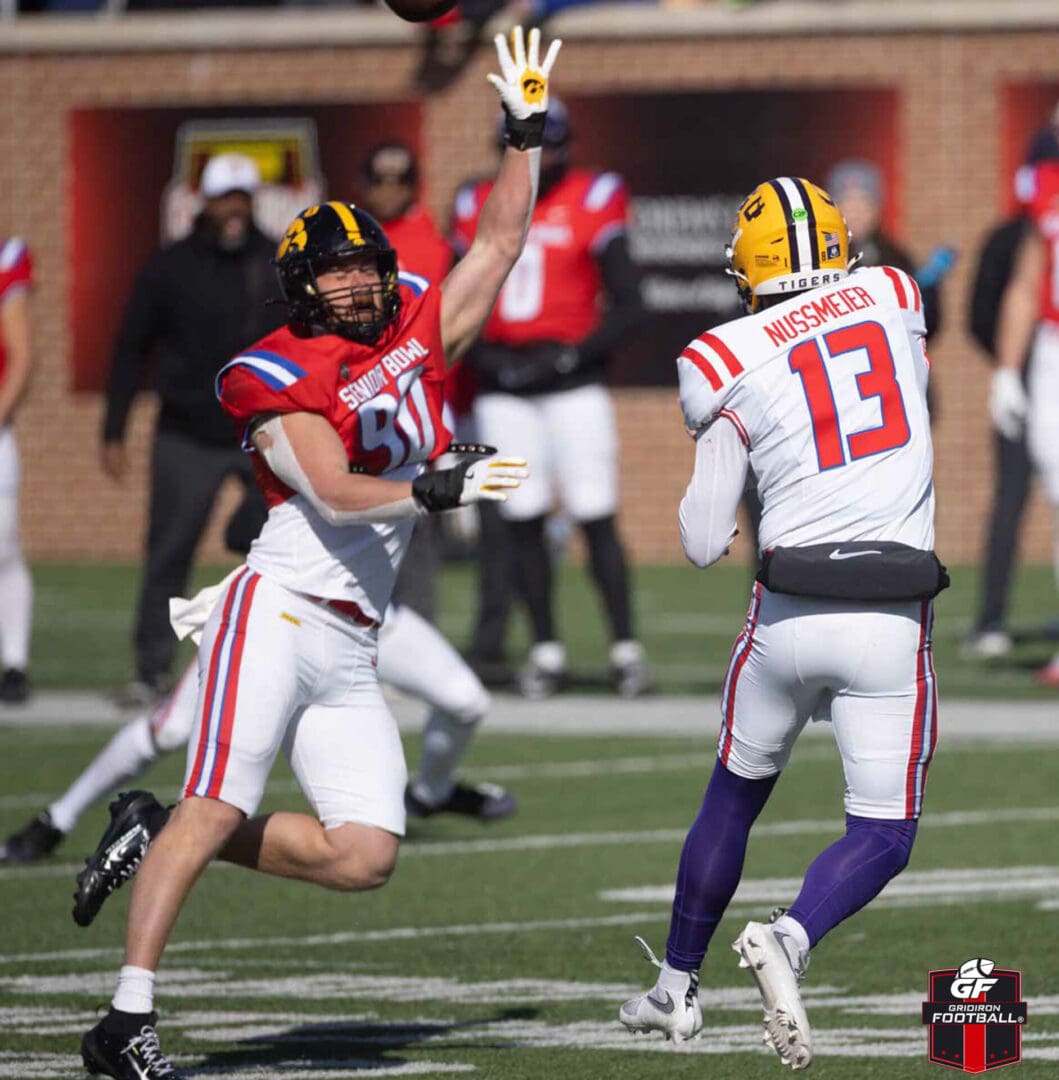 The story of the week, and the game, was LSU quarterback Garrett Nussmeier, who entered as the most polished passer in attendance and left as the game’s MVP. Nussmeier completed 5 of 8 passes for 57 yards and added a rushing touchdown, leading scoring drives on the American Team’s first two possessions. His calm command of the offense, accuracy in tight windows, and ability to process quickly reaffirmed his status as a rising draft prospect after he struggled with injuries his senior year.