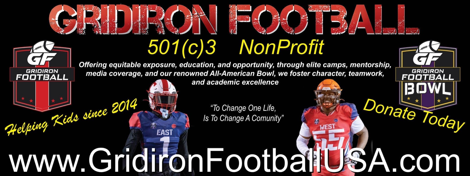 Gridiron Football is a Non-Profit 501.C3 in Louisiana that has helped over 10,000 kids get exposure to college coaches and signed National Letters of Intent. Our mission: to teach, motivate, and inspire young athletes and prepare them for adulthood. We use our monthly magazine and newsletter to promote athletes with a 2.8+ GPA that are recommended by their head coach in hopes that they graduate from High School.