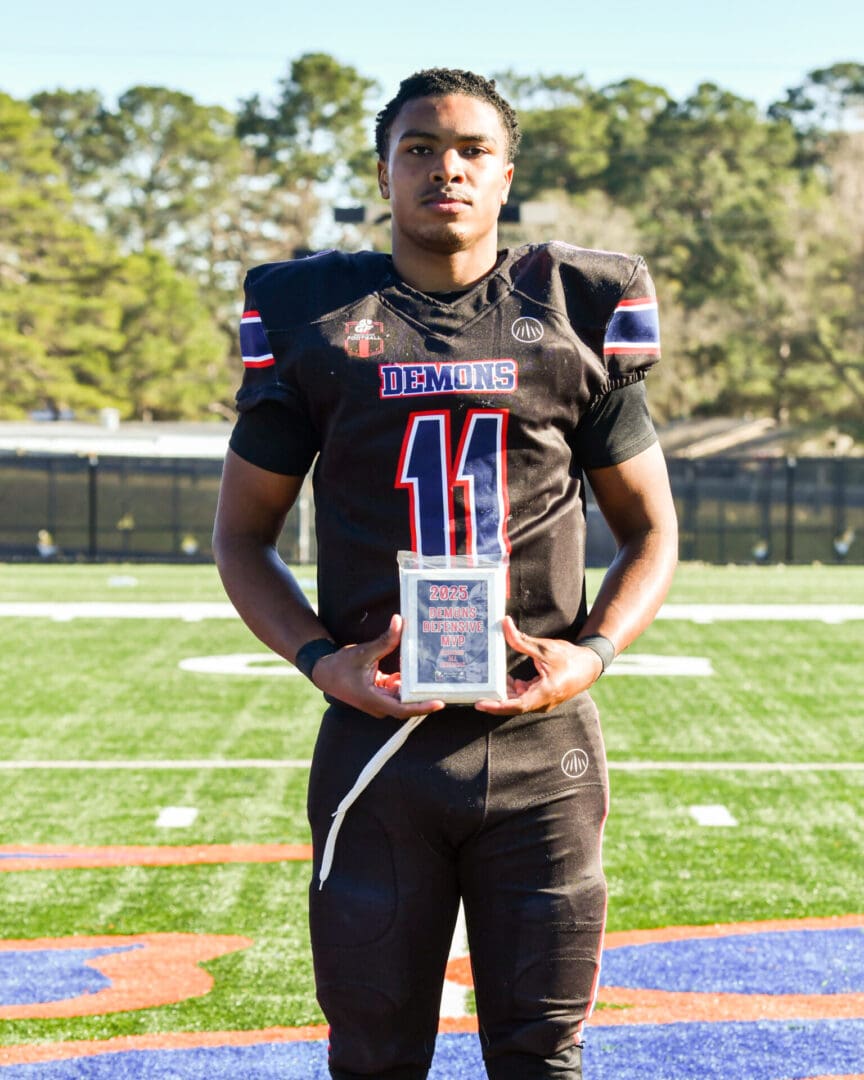 Even though the Knights were in control, the Demons never backed down and kept hanging around. Their defense got a fumble recovery themselves from their leading tackler Khyrie Francisco out of St. Martinville High School in St. Martinville, LA for the Demons’ second fumble recovery of the game. Jack Landry led the Demons down the field and Skyler Edwards launches himself into the end zone for an 18 yard touchdown to make it 31-21 with six minutes left to play in the ball game.