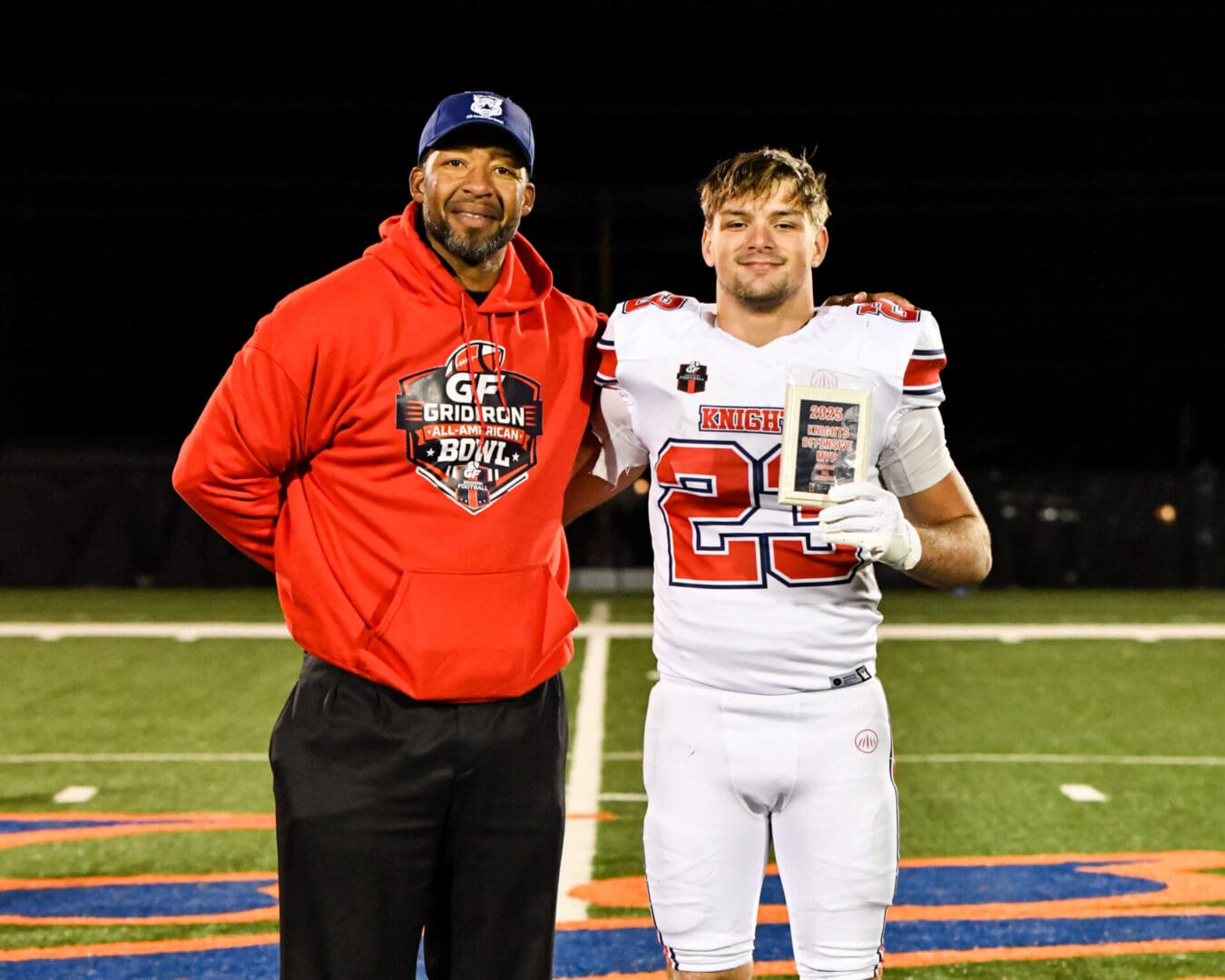 The Demons were able to get one more interception from Vince Delaney, but it was too little too late with the Knights hanging on to a 31-21 victory to advance to the championship round. It was a great effort by the Demons to make it a competitive game, but the Knights were just a step ahead the entire time thanks to a Gridiron Football All-American Bowl Game single game record three rushing touchdowns from Ayden Tate and an opportunistic defense.