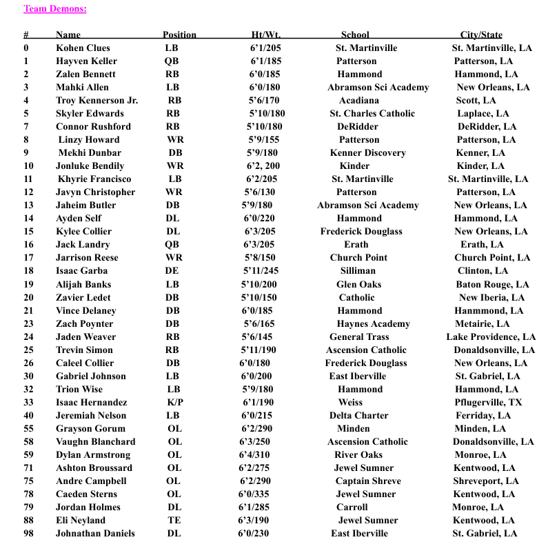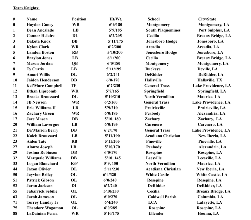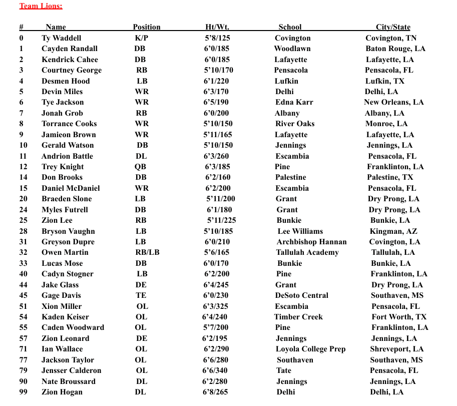 CEO Andy Bryson had the first overall pick and made perhaps the most shocking draft pick in Gridiron Football history by stealing Marcus Randall’s son Cayden Randall as the number one overall pick for Team Lions. Being a former LSU quarterback, Randall of course drafted a quarterback with his first overall pick for the Tigers, which was Franklinton High School (Franklinton, LA) QB Jacob Crain. Hosting the bowl game in the city of Pineville, it only made sense for Doug Gann’s first overall pick to be Pineville High School (Pineville, LA) RB Ayden Tate for the Knights. Then, finally, Terrance George drafted Erath High School (Erath, LA) QB Jack Landry to be his first pick for the Demons. To find out about the rest of the draft order, you can watch the entire draft below!
