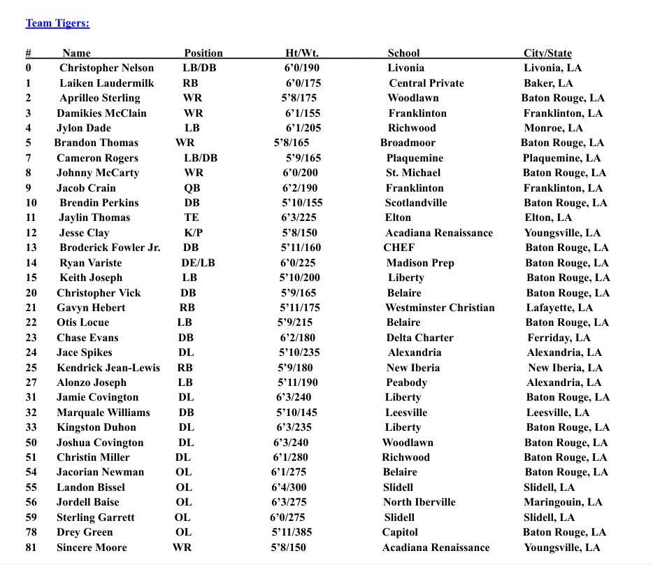 Team Tigers Defensive MVP: LB Ryan Variste, Madison Prep Academy (Baton Rouge, LA)