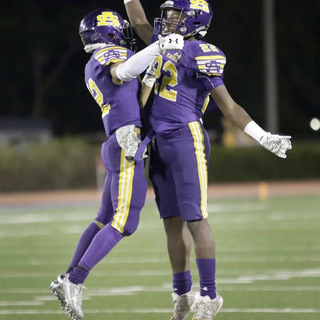 On the other side, the Purple Knights have numerous players to keep an eye on. On offense, we have 6’2” senior wide receiver, Joshua Jackson, who is a three-star commit to play for Tulane next year. Joshua uses his height to leap and grab those contested throws. Senior Hubert Caliste Jr. is a 6’4” 235lbs. three-star tight end who is committed to playing for Indiana next year. Hubert uses his route running to find open space on the field to become a great outlet for his quarterback to throw to.