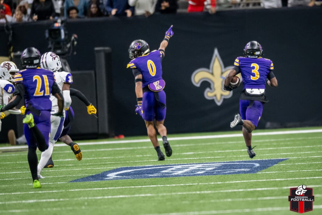 While Edna Karr was in control, St. Augustine kept playing hard. Chad Jones Jr. who is the son of former LSU great Chad Jones Sr. intercepted a Johnson pass and returned it back 90 yards to get the Purple Knights on the scoreboard at 21-7.